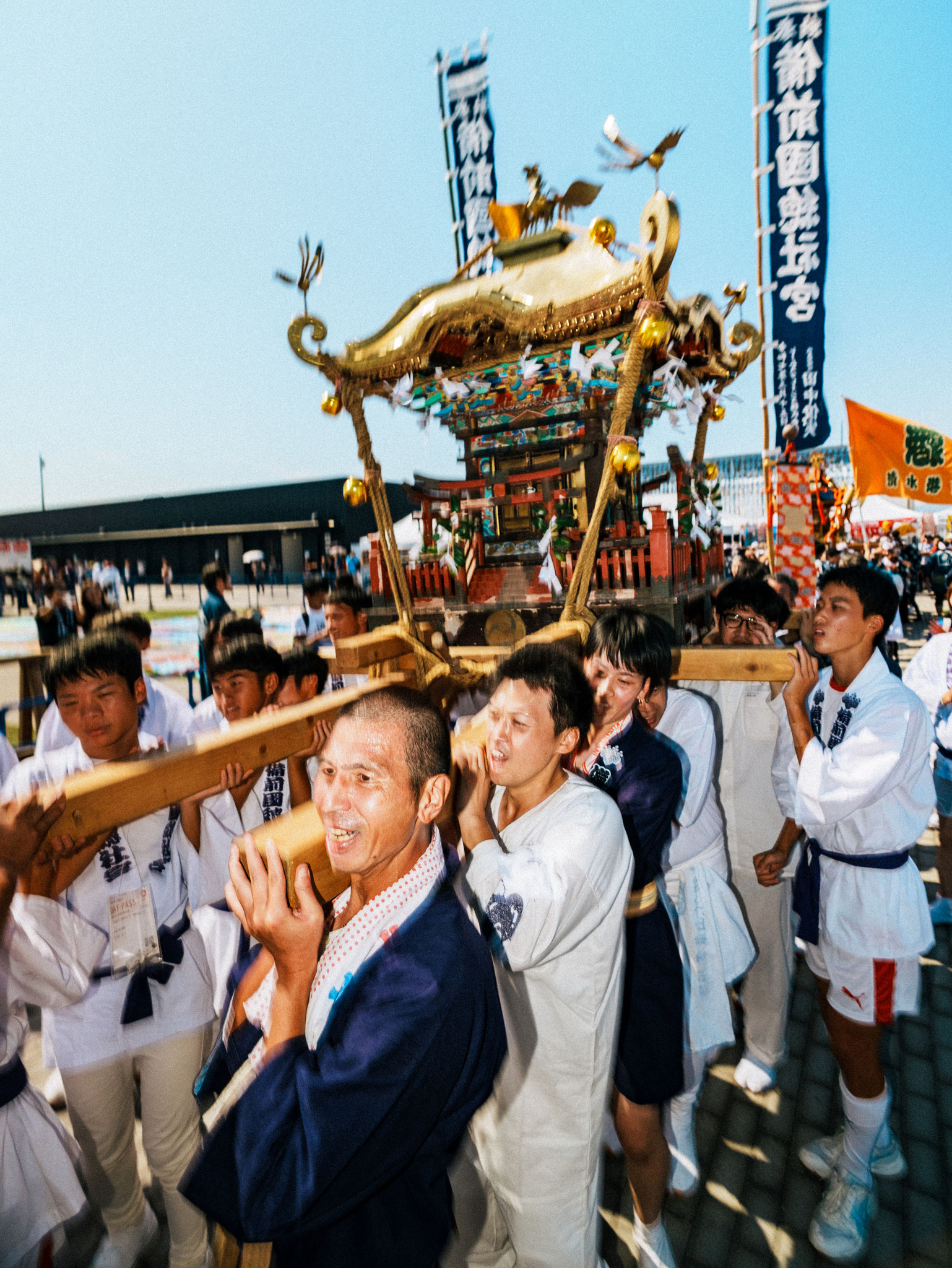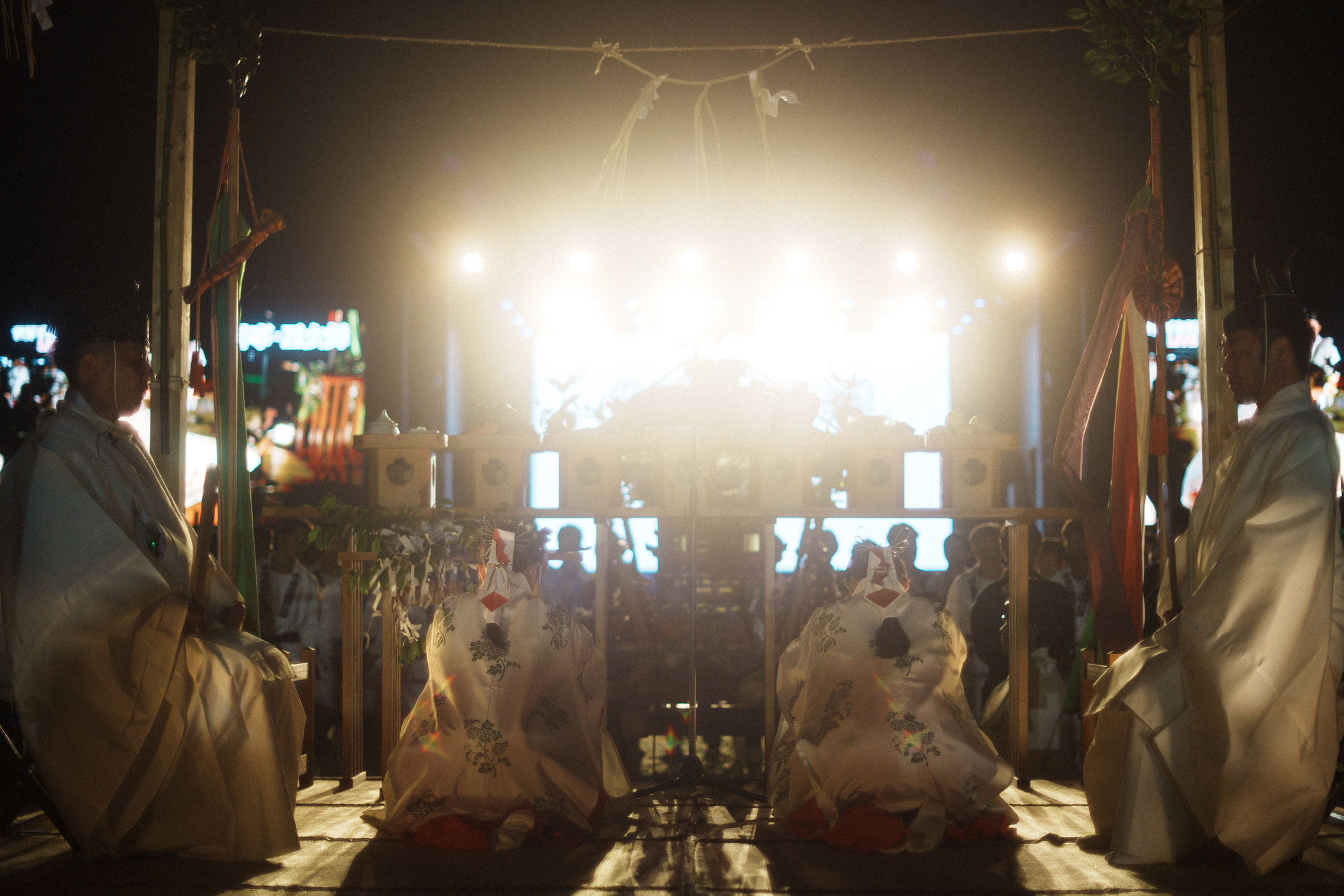 また、東京、神奈川、静岡、福岡より4基(当宮の神輿を合わせて5基)の神輿と、1基の山車が一堂に介し、同時に御霊入れをする、極めて珍しい神事を行う機会も頂きました。