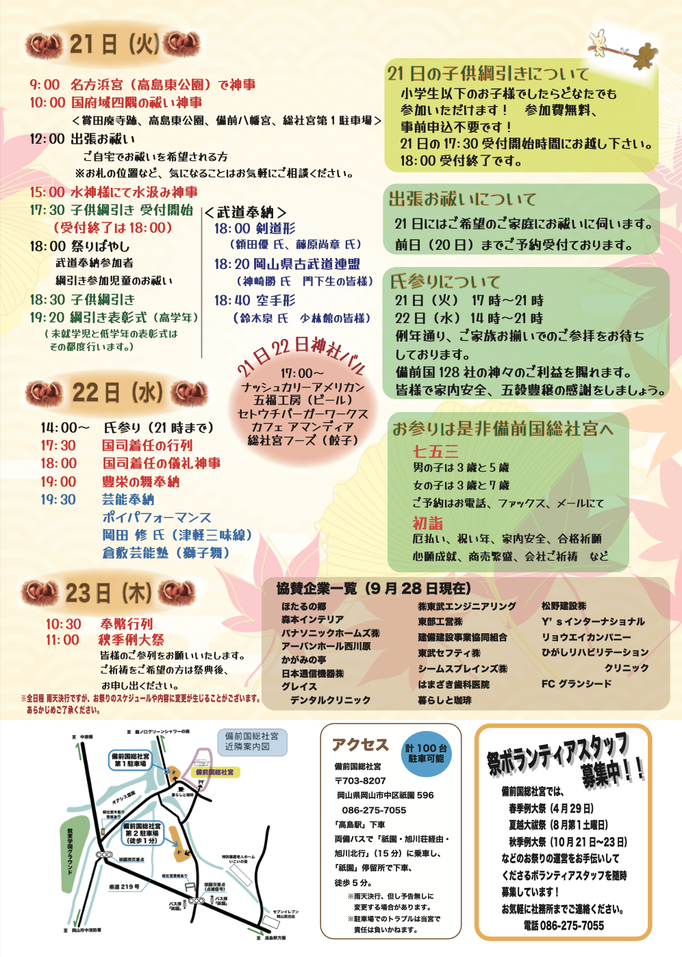 令和7年10月21日(火)~23日(木)、備前国総社宮 秋季例大祭を斎行致します。